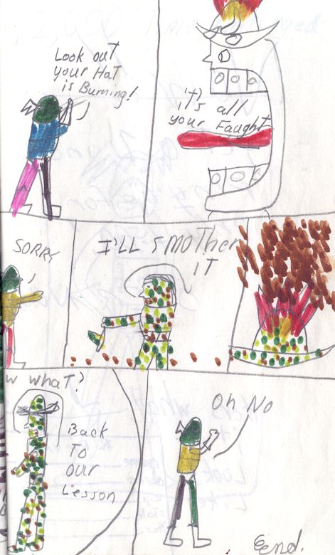 I recall that about the same time I drew this we did an art unit on the French pointilist painters. So I adapted that technique for Captain Russian - pointilist comic books.
