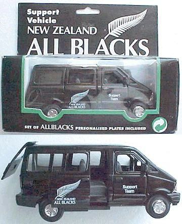 The All-Blacks Support Van - Okay, Jonah Lomu, Christian Cullen and Andrew Mehrtens want to go out and get a Steinlager. Only they want to take some friends and all arrive at the same time. What to do? Why, take the All-Blacks Support Van, of course! They can listen to the haka on the cassette player.
