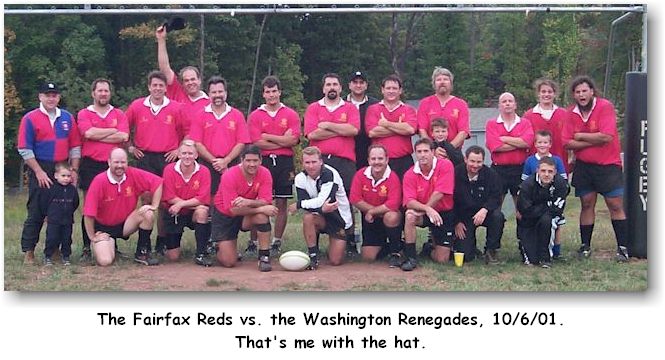 We started early this year: July 17th. Normally we begin on the first Tuesday of August. The coaches' rationale is that we'll need the extra time to prepare for a difficult schedule - our b-side is in competitive games as "the Fairfax Reds." But doing practice in July heat is beyond my interests and abilities. August may be hot, but at least there's the promise of cooler weather ahead. Besides, I always get some construction job on the house this time of the year that has to be done before I commit to rugby- this time it's replacing a bathroom in the house. So my first practice date will be August 14th, when I get back from a business trip to California. In the meantime I am trying to resolve the jersey order from hell with Ruggers.com, hitting up Guinness for more money, updating the website at my usual frenetic pace and sending out nearly-daily informational e-mails. So even when I'm not present, I'm contributing. Call me The Virtual Rugger.